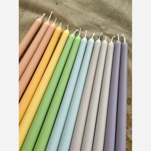شمع قلمی دست ساز در بسته های 12 تایی با رنگ بندی و سایزهای متنوع